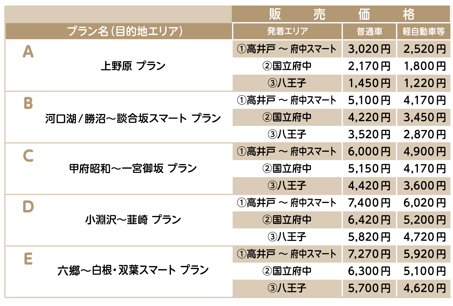 1)往路:発着エリア内のICから乗り、目的地エリア内のICで降ります。