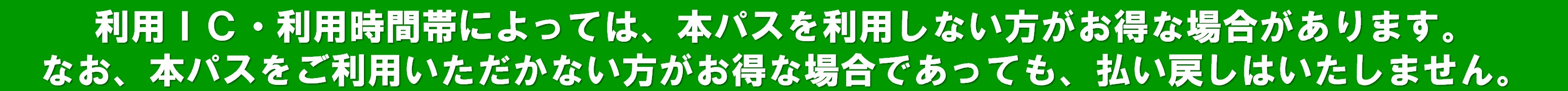 ※利用IC・時間帯によっては、本パスを利用しないほうがお得な場合があります。なお、本パスをご利用いただかないほうがお得な場合であっても、払い戻しはいたしません。