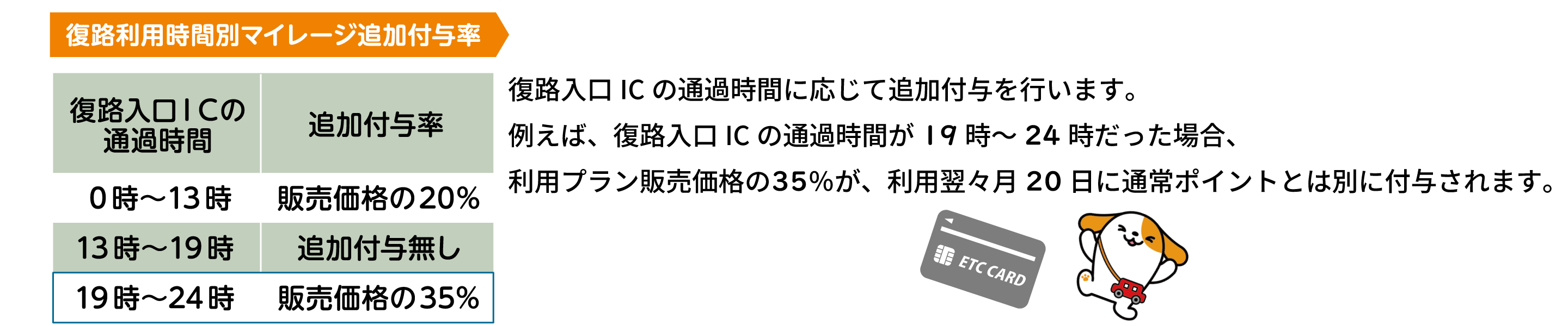 ※復路入口ICの通過時間に応じて追加付与を行います。