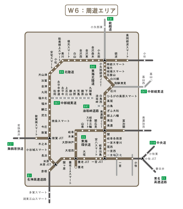 ! 周遊エリア外ICから流入し周遊エリア外ICで流出された場合は、たとえ周遊エリア内を走行しても本プランは適用されず、流入ICから流出ICまでの高速道路料金が請求されます。