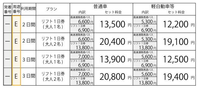 ※クレジットカード会社からの請求時には、高速道路周遊パス料金とリフト1日券の料金は分けて請求されます。