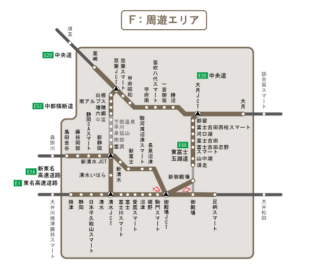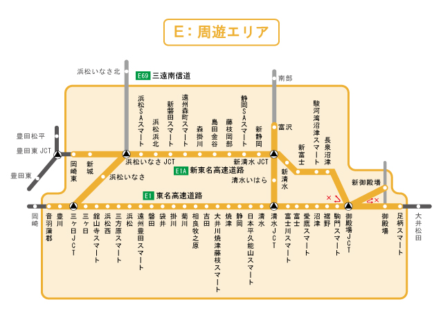 ※森掛川ICや大井松田ICなど周遊エリア外からご出発のお客さまも、連続走行により本プランをご利用可能(※ただし、周遊エリア外の部分の高速道路料金は別途必要)です。