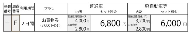 F <周遊プラン(発着なし)>(2日間以内)山梨県を含めた広域エリア新登場!