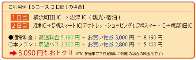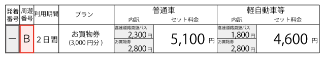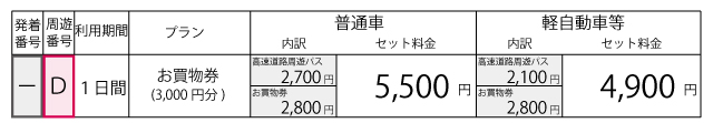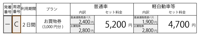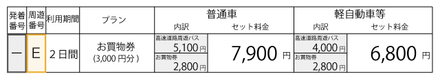 ※お買い物券の料金はクレジットカード、高速道路周遊パス料金はETCカードで決済されます。