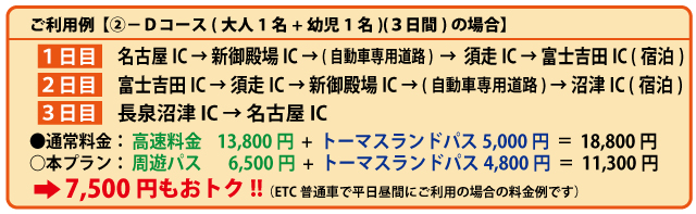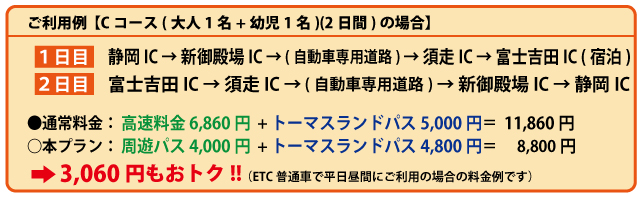 高速道路周遊パス(高速道路割引)に、富士急ハイランドのトーマスランド内のアトラクションが乗れるパス(大人1名+幼児1名・大人2名+幼児1名)が付いたオトクなプランです!