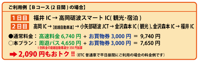 ※能越自動車道(小矢部砺波JCT~高岡IC)をご利用の場合、本プランの料金とは別に能越自動車道の通行料金が必要です。