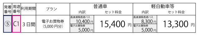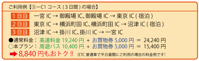 ⑤ - C1 プラン(3日間以内)・・東京や神奈川方面へご旅行される場合