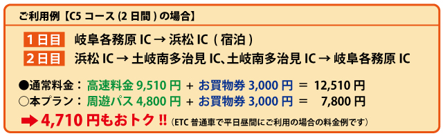 !登録内容(ETCカード番号、有効期限等)が間違っている場合や、登録していないカードを使用した場合、本プラン料金は適用されません。