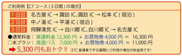⑤ - C3 プラン(2日間以内)・・静岡や松本方面へご旅行される場合