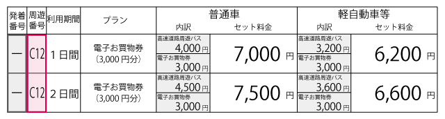 ※クレジットカード会社からの請求時には、高速道路周遊パス料金と電子お買物券の料金は分けて請求されます。