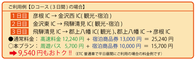 D プラン(3日間以内) ・・・石川・福井・飛騨エリアへご旅行の場合